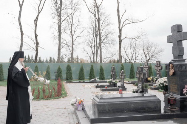 По окончании панихиды архипастырь совершил литию на малом братском кладбище, где покоится первый Патриарший Экзарх всея Беларуси, и возложил на его могилу цветы.