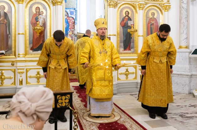 Его Высокопреосвященству сослужили: председатель Наградной комиссии Белорусской Православной Церкви, председатель приходского совета кафедрального собора иерей Дионисий Ковалев; председатель Синодального отдела по благотворительности и социальному служению Белорусской Православной Церкви иерей Роман Артемов и клирики собора.