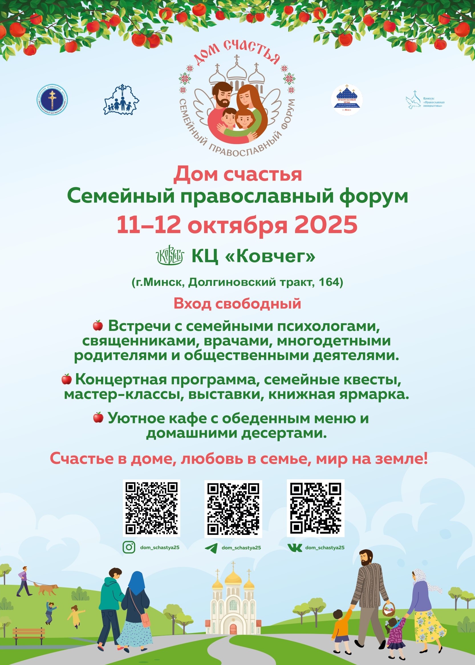 10 октября 202511-12 октября 2025 года по благословению Митрополита Минского и Заславского Вениамина, Патриаршего Экзарха всея Беларуси, в культурном духовно-просветительском центре «Ковчег» пройдет Семейный православный форум «Дом счастья». Открытие форума состоится 11 октября 2025 года в 10.00.