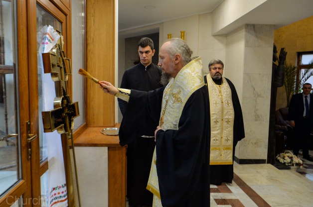 За богослужением были вознесены сугубые молитвенные прошения о здравии Святейшего Патриарха Московского и всея Руси Кирилла по случаю 79-летия со дня его рождения.