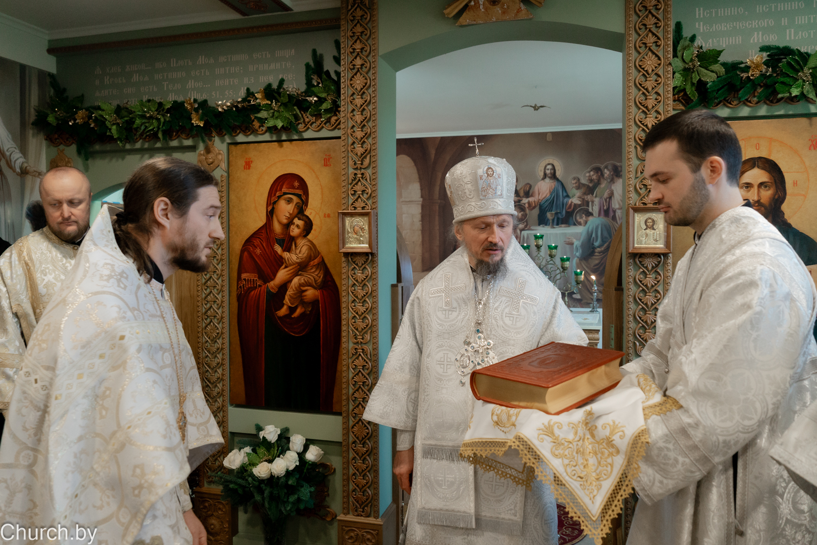 Его Высокопреосвященству сослужили: секретарь Минской епархии протоиерей Андрей Волков; благочинный 2-го Минского районного благочиния, настоятель прихода храма Преображения Господня города Заславля Минского района протоиерей Николай Мозгов; настоятель прихода Святой Живоночальной Троицы в агрогородке Хатежино Минского района иерей Василий Ревель.