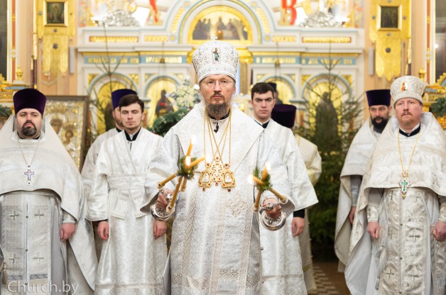Его Высокопреосвященству сослужили: благочинный 3-го Минского городского округа, настоятель Александро-Невского храма протоиерей Николай Коржич, секретарь Минской епархии протоиерей Андрей Волков и клирики Александро-Невского прихода.