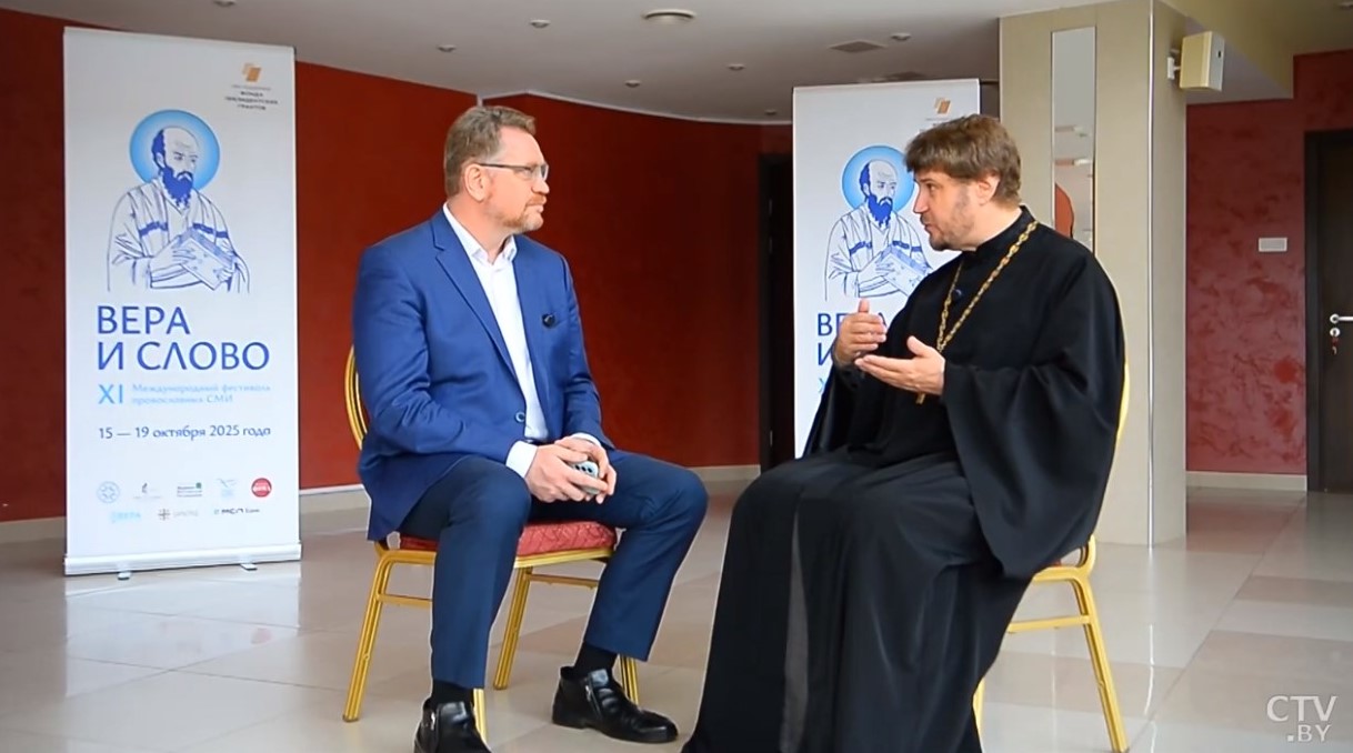 На семейном православном форуме «Дом счастья», который в рамках Недели родительской любви проходил в культурном духовно-просветительском центре «Ковчег» Свято-Елисаветинского монастыря города Минска, была организована встреча с автором книг о семье и воспитании, отцом восьмерых детей, настоятелем храма святых Космы и Дамиана на Маросейке в Москве протоиереем Феодором Бородиным. На полях форума со священником пообщался ведущий программы «Прикосновение к свету» на телеканале СТВ, заместитель председателя Синодального информационного отдела Белорусской Православной Церкви Олег Лепешенков.